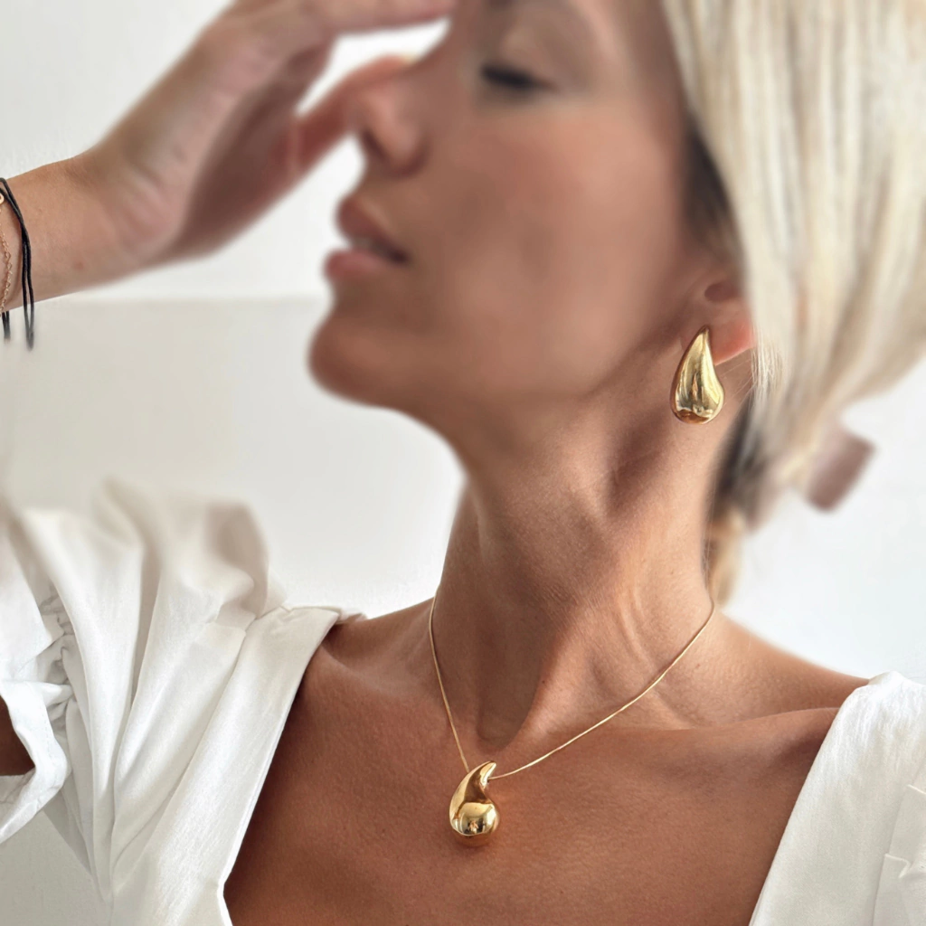 Set Collar - Aros gota. Acero inoxidable chapado .